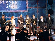 Den E-Junioren des FC Winterthur ist es an diesem Nachmittag wahrlich nicht langweilig: Stets entdecken sie im Publikum ein neues bekanntes Gesicht, jubeln ihren Idolen zu oder tuscheln aufgeregt. Fünfhundert Gäste, Nominierte, VIPs und Medienleute aus der Welt des runden Leders sind ins Studio 1 zur Liveshow geströmt. Im Scheinwerferlicht kurz zu erkennen: Ex-IOC-Präsident Juan Antonio Samaranch, Beckham-Gattin Victoria, Altstars wie Abedi Pel, Franz Beckenbauer sowie Michel Platini. Und ja, auch nationale Promis, unter ihnen Beni Thurnheer, lassen sich diesen Highclass-Event nicht entgehen. Die Krönung des FIFA-Weltfussballers 2001 ist das unbestrittene Highlight des Tages. Den Titel erhält schliesslich der Portugiese Luis Figo, gefolgt vom Captain des englischen Nationalteams, David Beckham, und dem spanischen Jungstar Ral. Das allerdings erfährt die Welt inklusive Presse erst zehn Minuten vor Schluss der Sendung. Zuvor werden verschiedenste Preise vergeben, u.a. der Fair Play Award und der Award für das beste Nationalteam des Jahres. Im ersten Jahr des zweiten Jahrtausends zeichnete mann zudem erstmals in der Fussballgeschichte die weltbeste Kickerin aus: Mia Hamm aus den USA. 130 Nationaltrainer hatten vorgängig die Qual der Wahl. Für das Oscar-Spektakel der Fussballwelt konnten Amanda McLane, die bekannte Moderatorin eines französischen Sportmagazins, und Michel Zen-Ruffinen, Generalsekretär der FIFA, verpflichtet werden. Im Showblock: der italienische Rockstar Zucchero, ein bekennender AC-Milan-Fan, und das neuste deutsche Popstar-Produkt "BroÕSis". Insgesamt 28 Broadcaster, die über 110 Länder bedienen, beliefert das tpc an diesem Tag mit Bild und Ton: im Auftrag der FIFA und der KirchSport AG. Die Vorbereitungen für die Gala liefen seit Frühjahr: Bereits im März 2001 offerierte das tpc die Studioproduktion. Ende August erhielt es auch den Zuschlag für die Gesamtproduktion. Somit waren Produzent, Redaktoren und das Marketing gefordert - nebst Studioteam und Ausstattung. Das Team organisierte die Showteile, erstellte die Sportlerclips und plante die Medienkonferenz mitsamt der damit zusammenhängenden Logistik. Da ist es besonders wertvoll, wenn man - wie die tpc-Crew - auf umfassender Erfahrung und eingespielten Abläufen aufbauen kann. In Betrieb waren im Studio 1 übrigens auch Kommentatorenkabinen für diejenigen Sender, die live übertrugen. Auf Wunsch der BBC stellte das tpc zudem ein kleines Interview-Studio (in der Werkstrasse) sowie einen separaten Schnittplatz zur Verfügung. Vor der Livesendung hielt die FIFA im World Trade Center (WTC) ihre Medienkonferenz ab: Bekannt gegeben wurden vorerst nur die Nominationen, nicht aber die Sieger. Hier richtete das tpc nebst dem Konferenzraum ein Mediacenter mit fünfzig ISDN-Anschlüssen ein, stellte Nominierten wie Auftraggebern verschiedene Räumlichkeiten zur Verfügung. Die tpc-Ausstatter sorgten für die passende Kulisse, die Techniker u.a. für das Ausrüsten der Simultan-Übersetzungskabinen. Über hundert Journalistinnen und Fotografen aus aller Welt nutzten letztendlich diese erstklassige Infrastruktur. Als sich der Medientross nach der Konferenz in Richtung Studio 1 verlagerte, waren die Security-Leute gefragt. Auch hier schien alles bestens organisiert: Die Videokameras mussten vor Einlass ins Studio abgegeben werden, wurden jedoch un-mittelbar nach der Sendung für Interviews etc. wieder ausgehändigt. Da KirchSport die Rechte für alle bewegten Bilder besass, durften einzig die Fotografen ihre Kameras mitnehmen. Für sie stand seitlich im Studio ein eigenes Podest bereit, auf dem sie die Show mitverfolgen konnten. Das von der FIFA mitgebrachte, erst einjährige Dekor sinngemäss aufzubauen war Job der Ausstattung. Mit einer gerundeten Bühne inklusive Treppenaufgang ergänzten die tpc-Profis das bestehende Dekor. Auch sonst holten sie optisch in und um das Studio einiges heraus: Selbst der Gang, durch den die Fussballer ins Studio einzogen, war mit rotem Teppich ausgelegt. Pflanzen säumten den Weg. Hier sah auch der Laie, dass es sich um einen Anlass der gehobenen Klasse handeln musste. Inmitten des topmodernen Ambientes wirkte der Teleprompter, von dem Zucchero doch tatsächlich den Text seines Hits "Baila" ablas, schon fast antiquiert. Früher veranstaltete die FIFA die Gala gemeinsam mit der European Sport Magazine Association (ESM). Deshalb wurde sie in Barcelona, Brüssel oder Rom inszeniert. Dominik Schmid von der KirchSport AG: "Seit diesem Jahr ist die Gala erstmals eine reine FIFA-Sache. Weil die FIFA ihren Sitz in Zürich hat, lag es auf der Hand, die Show hier zu produzieren." Die Sterne stehen also gut, dass die besten Fussballerinnen und Fussballer auch künftig in Zürich gekürt werden. Text: Brigitte Maurer Foto: Heinz Stucki SF DRS | |||||||||||||